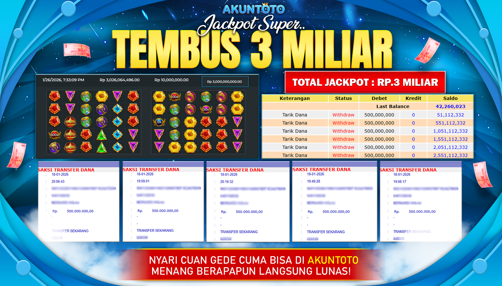 SELAMAT DATANG DI AKUNTOTO. SITUS SLOT, LIVE CASINO & AGENT TOGEL ONLINE TERBESAR DAN TERPERCAYA DI INDONESIA. MINIMAL DEPOSIT Rp.10.000,- & MINIMAL WITHDRAW Rp.50.000,- DENGAN 1 USER ID SUDAH DAPAT MAINKAN SEMUA PERMAINAN